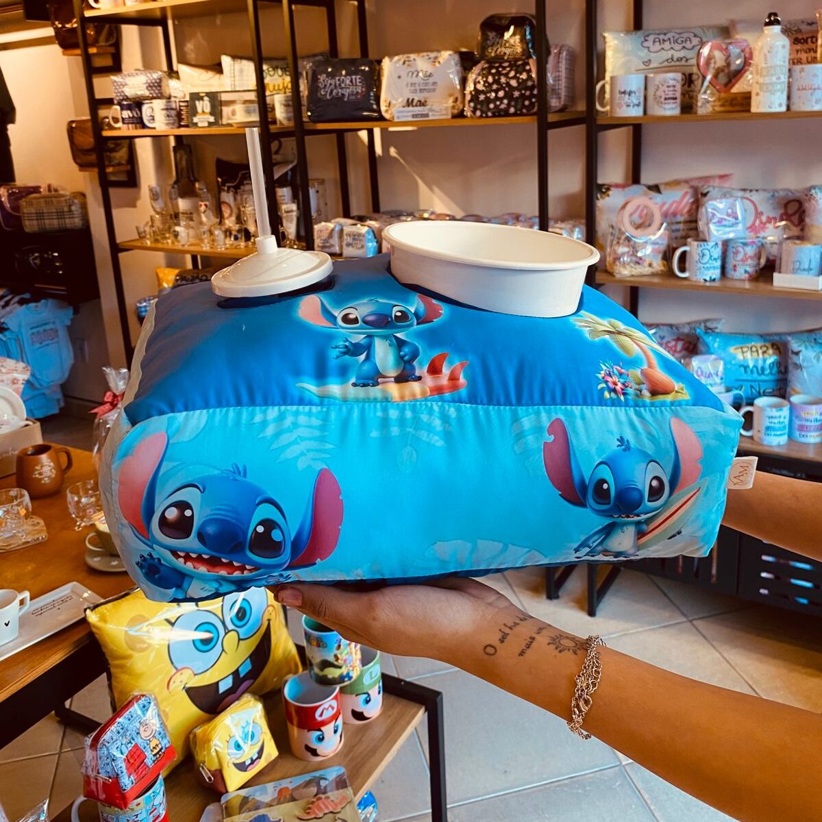 Transforme seus momentos de filme em casa em uma experiência divertida e confortável com a Almofada de Pipoca Stitch! Com estampa fofa e colorida do personagem mais querido da Disney, essa almofada é perfeita para fãs de todas as idades. O suporte central possui espaço para balde de pipoca (não incluso) e acompanha 1 copo com tampa e canudo, ideal para curtir suas bebidas favoritas sem bagunça.