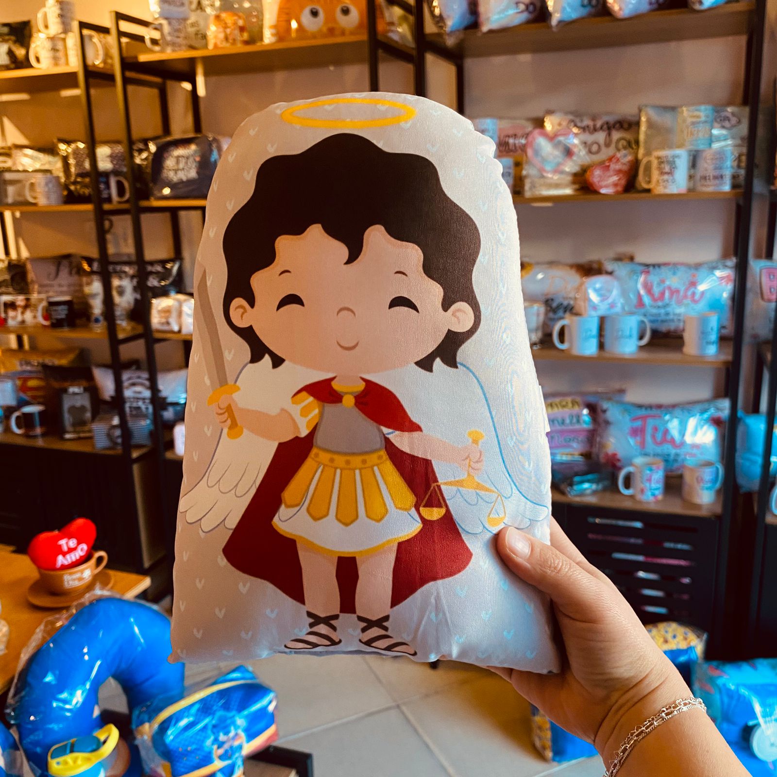 Proteção, fé e aconchego em um só produto! A Almofada Santinhos São Miguel Arcanjo é perfeita para quem busca decorar o lar com espiritualidade e beleza. Com arte delicada e cores suaves, ela é uma forma carinhosa de manter a presença do Arcanjo protetor por perto no dia a dia.