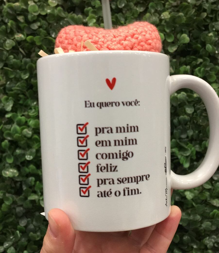 Caneca Porcelana Eu quero você pramim,em mim,comigo…