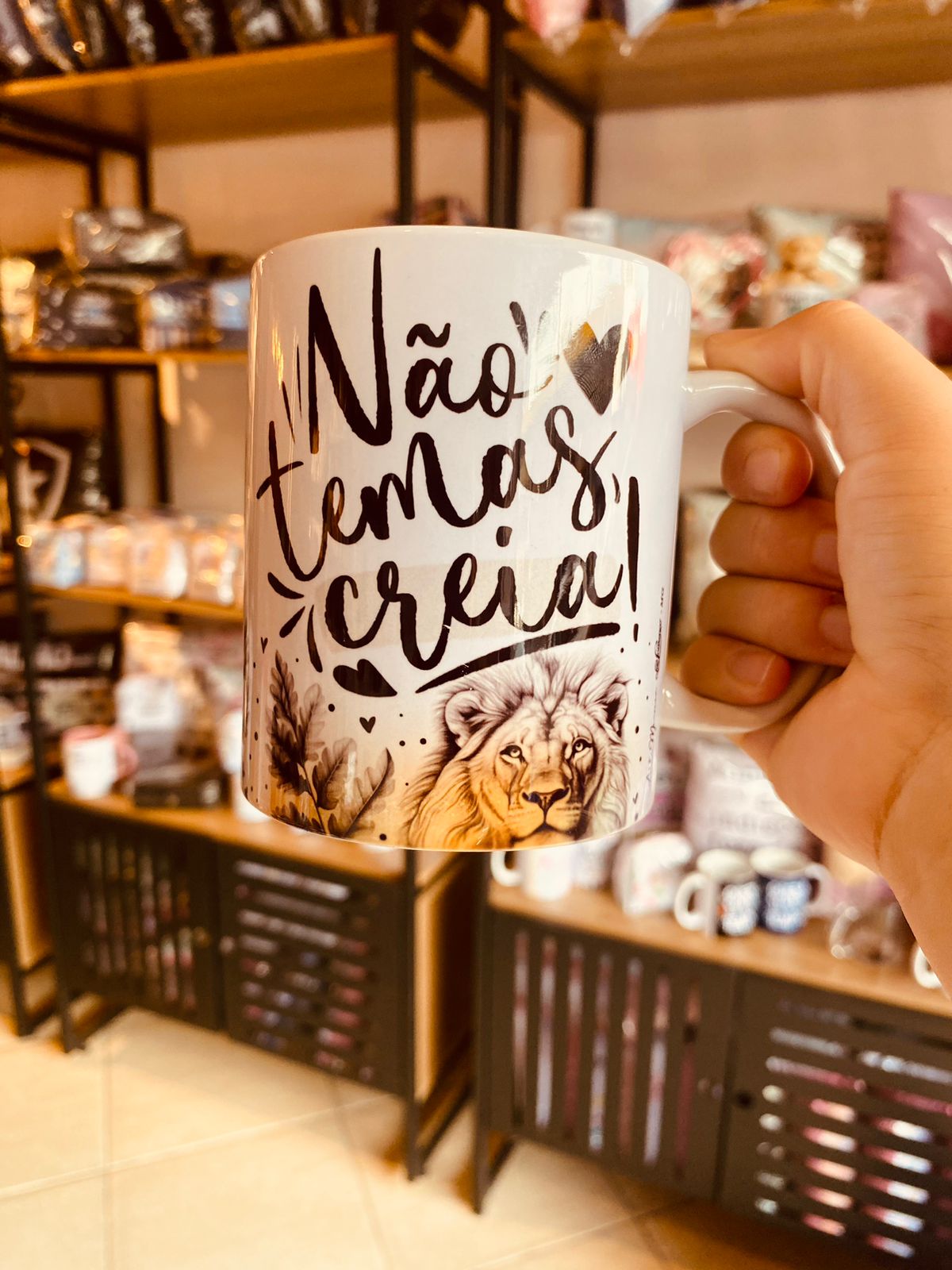 A Caneca de Porcelana Não temas, creia! é perfeita para trazer inspiração e fé ao seu dia a dia. Com design elegante e mensagem motivadora, é ideal para tornar cada momento de pausa mais especial ou para presentear alguém querido.