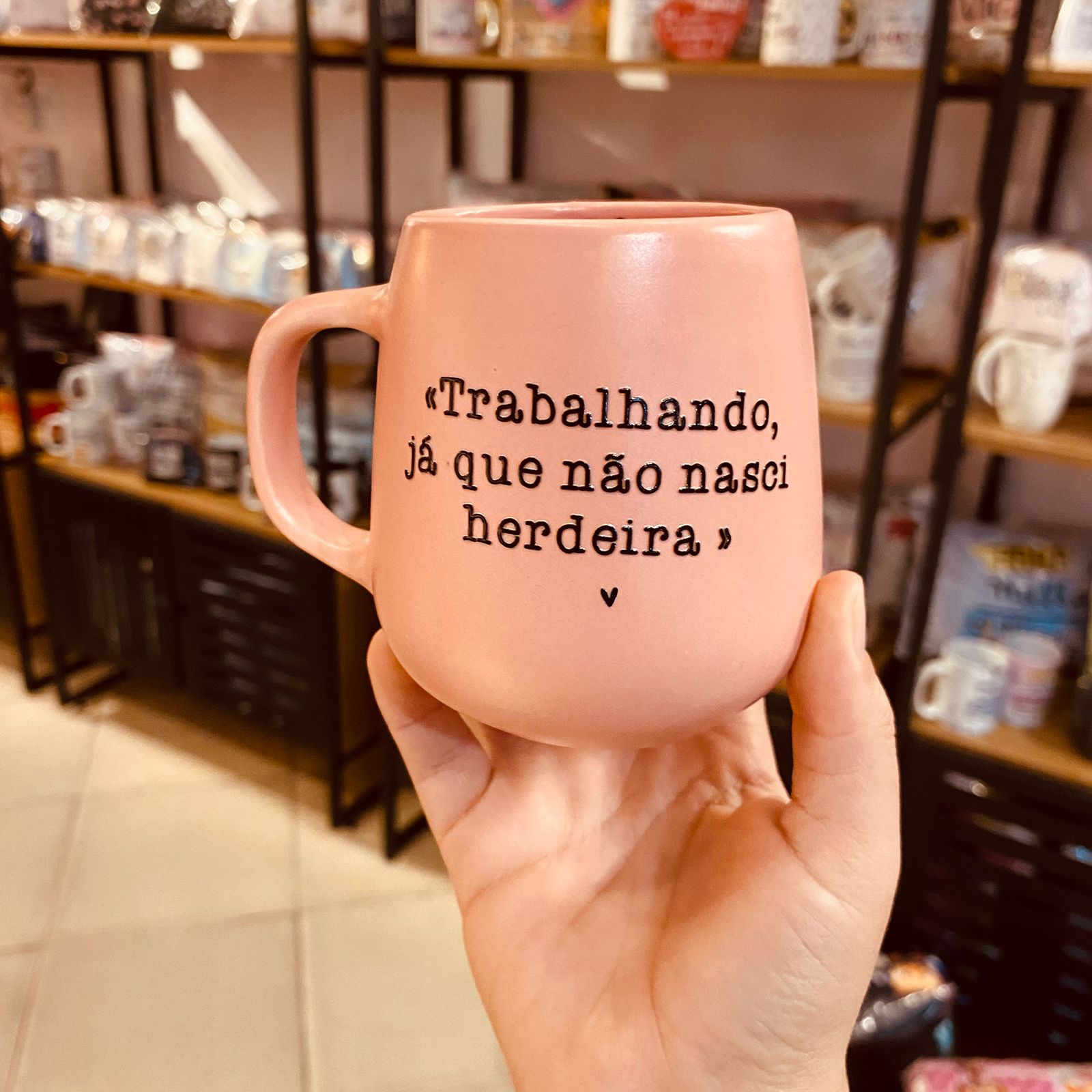 Com bom humor e personalidade, a Caneca de Cerâmica “Trabalhando, já que não nasci herdeira!” é perfeita para quem enfrenta a rotina com leveza e um toque de ironia. Ideal para começar o dia com uma dose de cafeína e sorrisos!