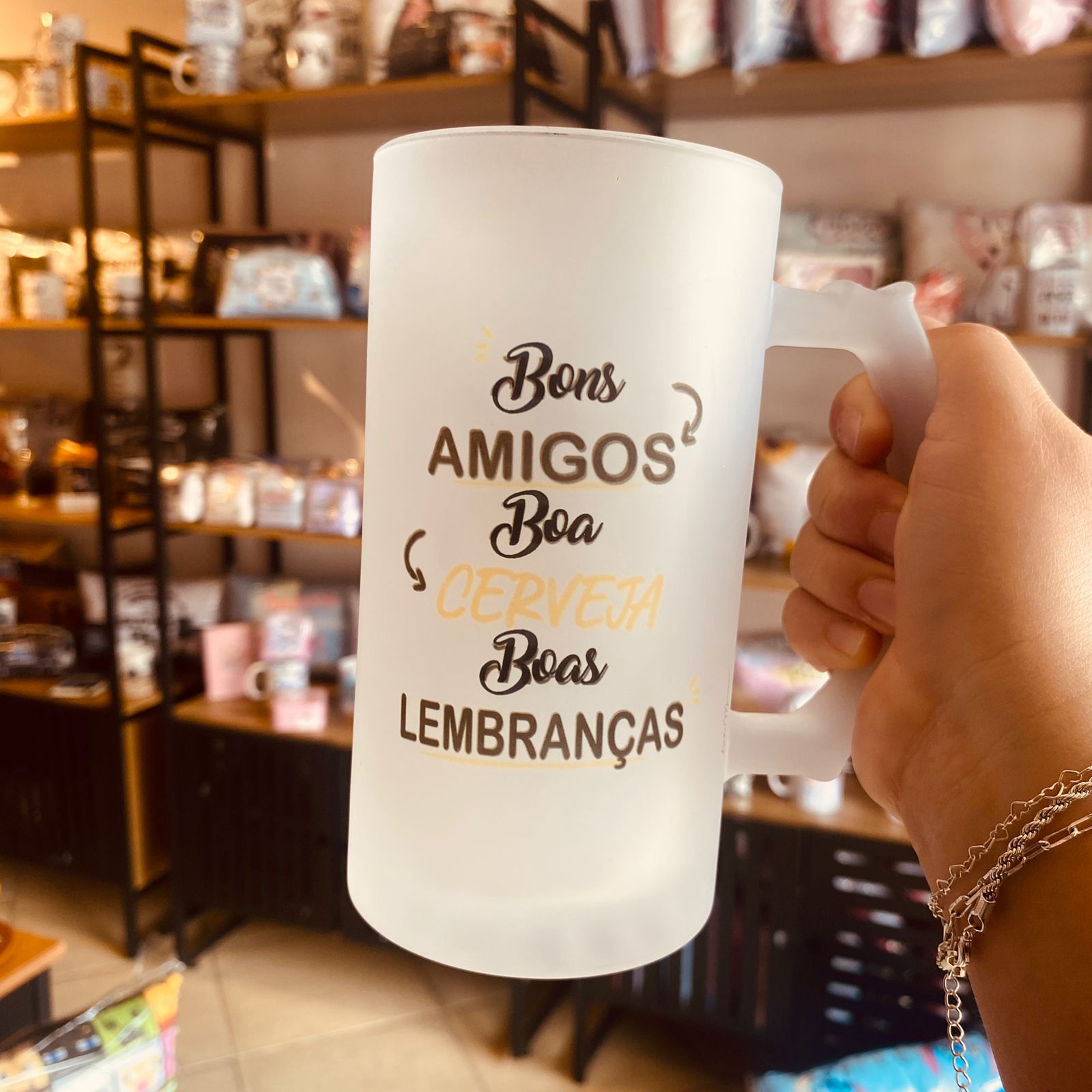 Caneca Chopp Vidro Jateado Bons amigos,boa cerveja, boas lembranças!