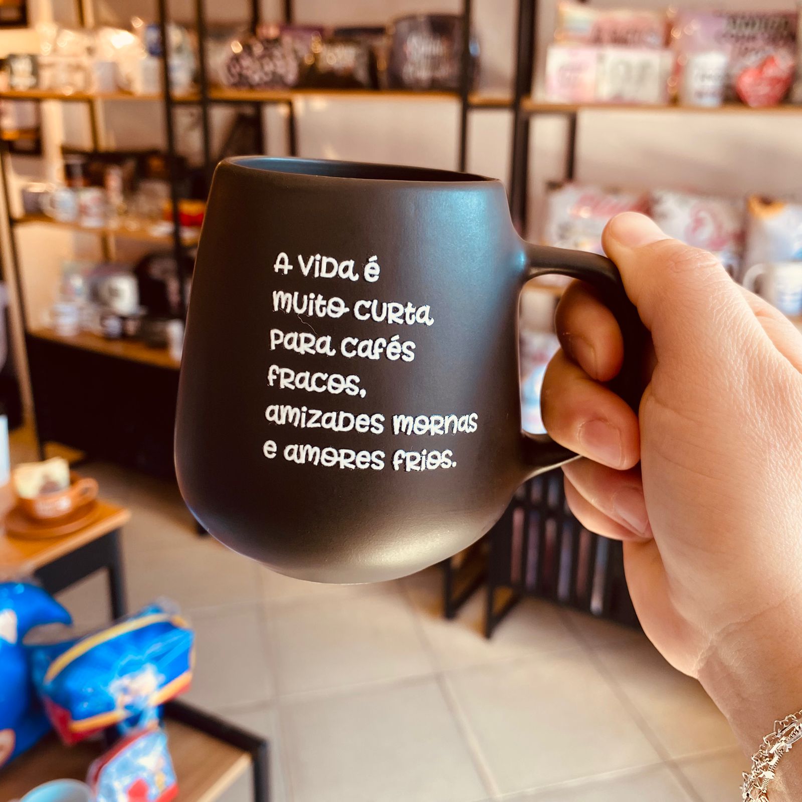 Para quem vive com intensidade e valoriza o que realmente importa! A Caneca de Cerâmica com a frase “A vida é muito curta para cafés fracos, amizades mornas e amores frios” é perfeita para quem ama começar o dia com atitude, boas companhias e sentimentos verdadeiros.