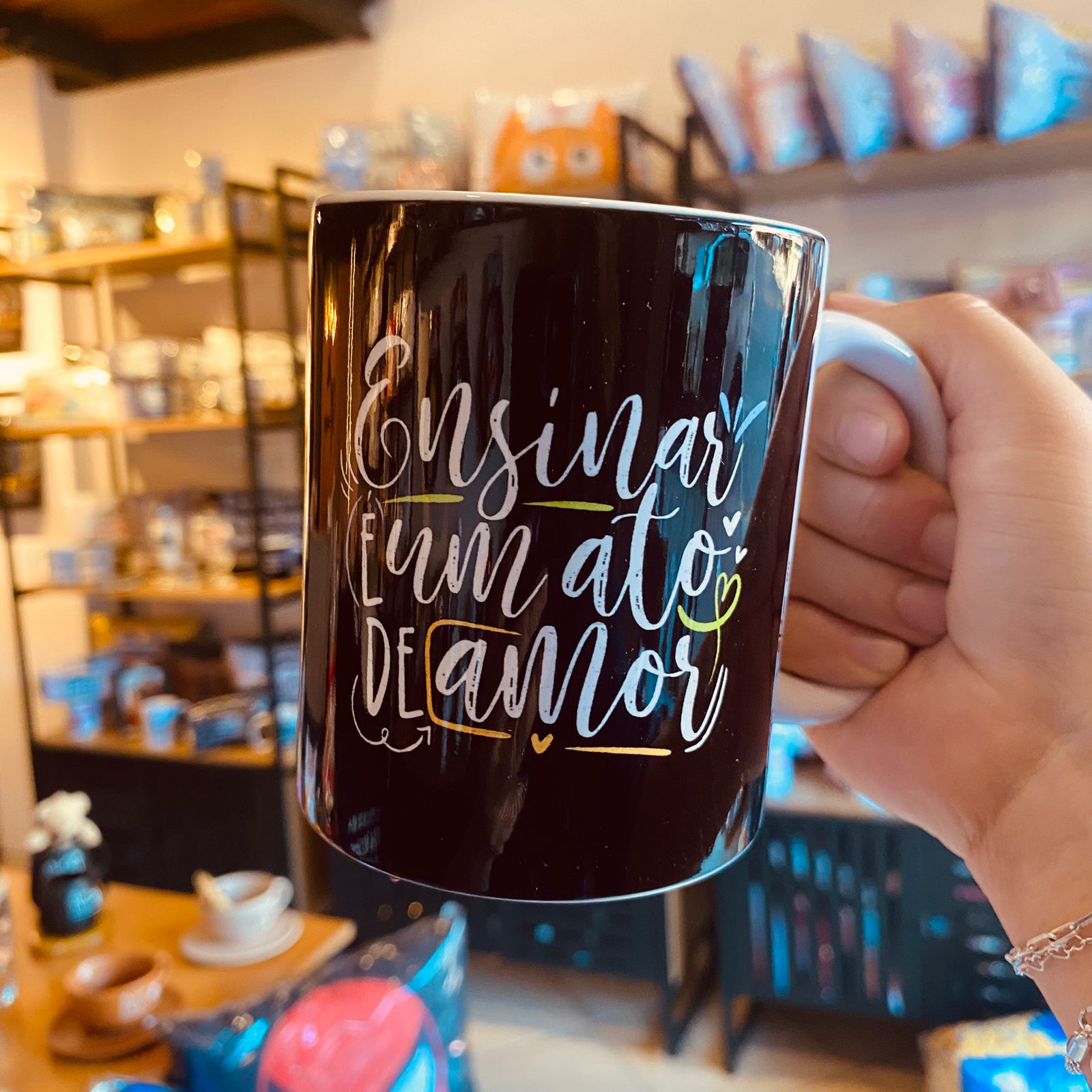 A Caneca Porcelana “Ensinar é um ato de amor!” celebra a dedicação, o carinho e o compromisso de quem transforma vidas todos os dias através da educação. Com uma mensagem inspiradora, é o presente perfeito para professores e educadores que fazem da sala de aula um espaço de afeto e aprendizado.