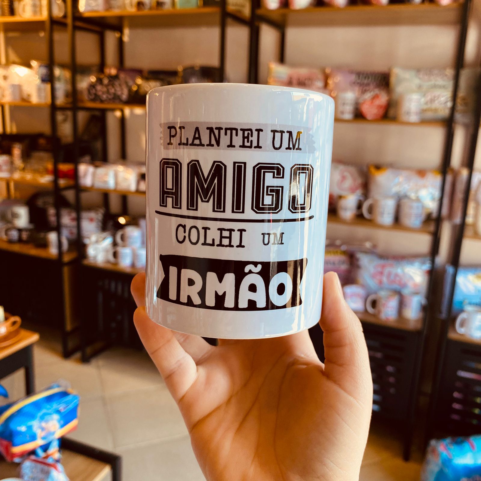 Caneca Porcelana “Plantei um amigo, colhi um irmão” – 325ml