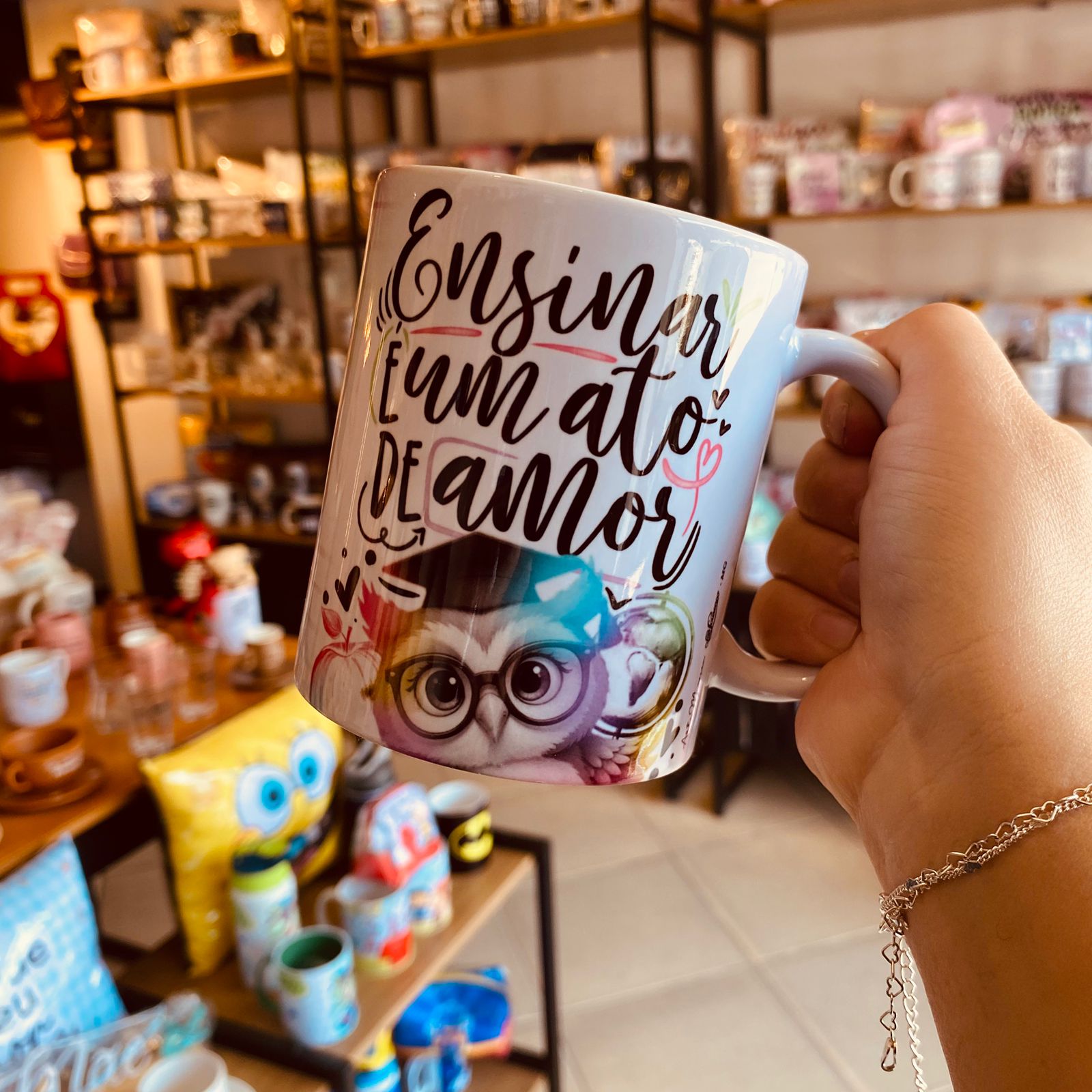 Uma homenagem cheia de carinho, reconhecimento e gratidão para quem dedica sua vida ao ensino. A Caneca “Ensinar é um Ato de Amor” traz a ilustração de uma coruja, símbolo de sabedoria, representando todo o amor e dedicação dos professores.