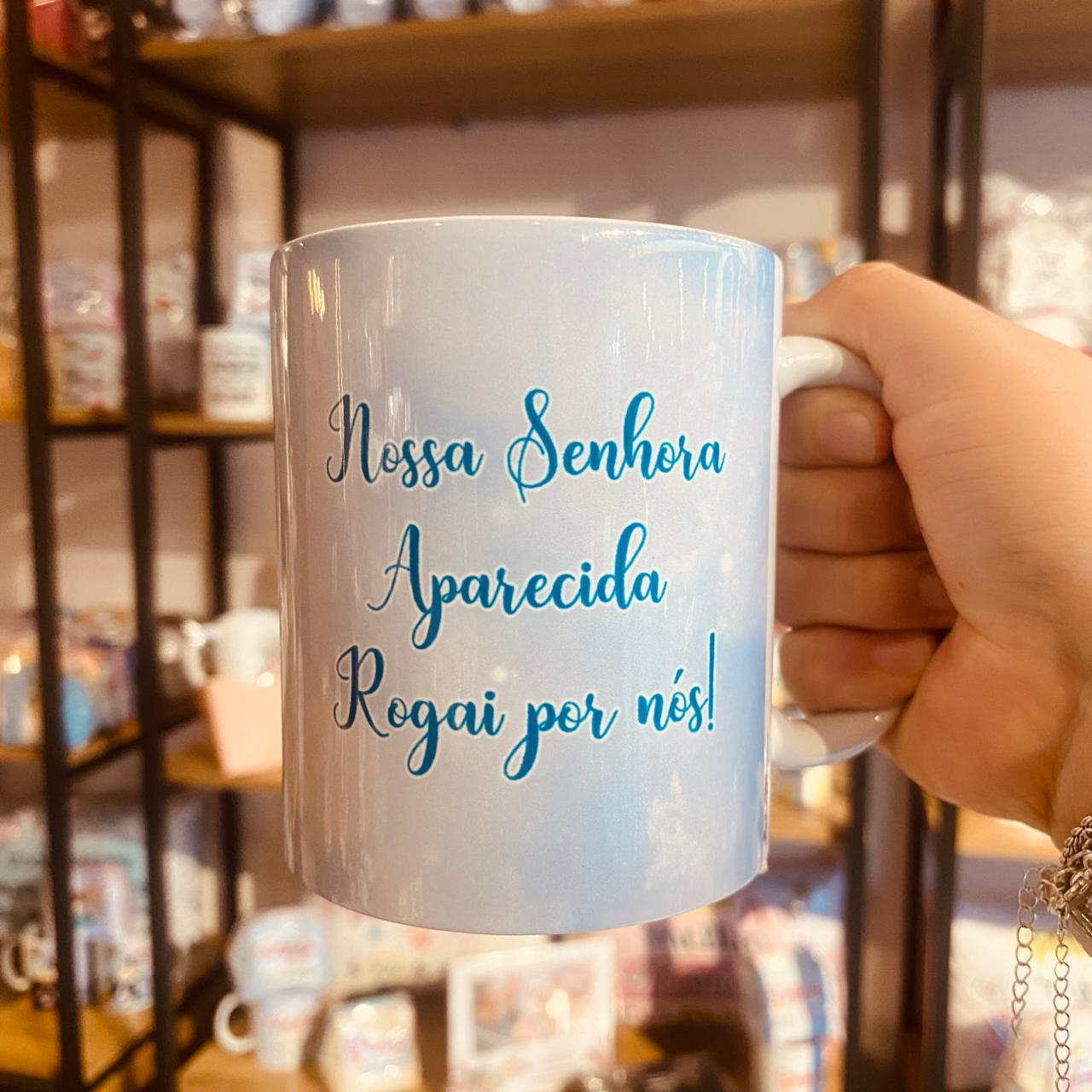 Uma caneca especial que transmite fé e devoção em cada detalhe. A Caneca de Porcelana Nossa Senhora Aparecida – Rogai por Nós! é perfeita para quem deseja começar o dia com bênçãos, esperança e gratidão, além de ser uma ótima opção de presente religioso.