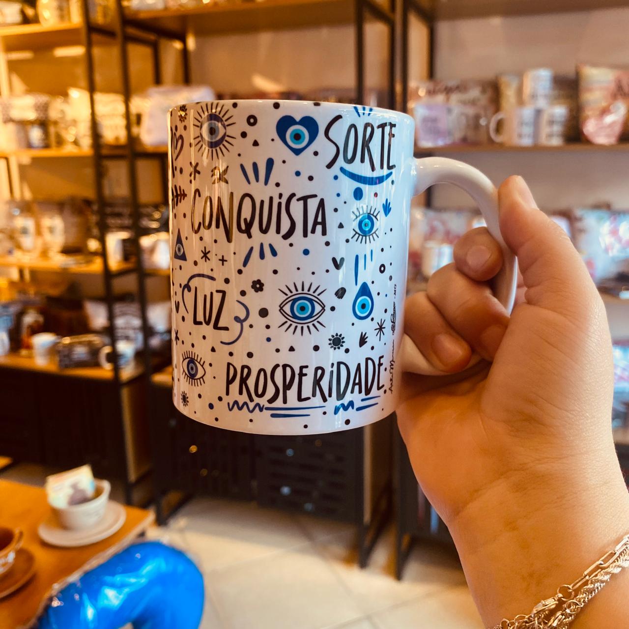 Símbolo de proteção e boas energias, a caneca “Olho Grego” é perfeita para quem busca começar o dia com positividade. Com design moderno e cheio de significado, ela traz palavras de força como Saúde, Amor, Sorte e Conquista, inspirando bons sentimentos em cada gole.