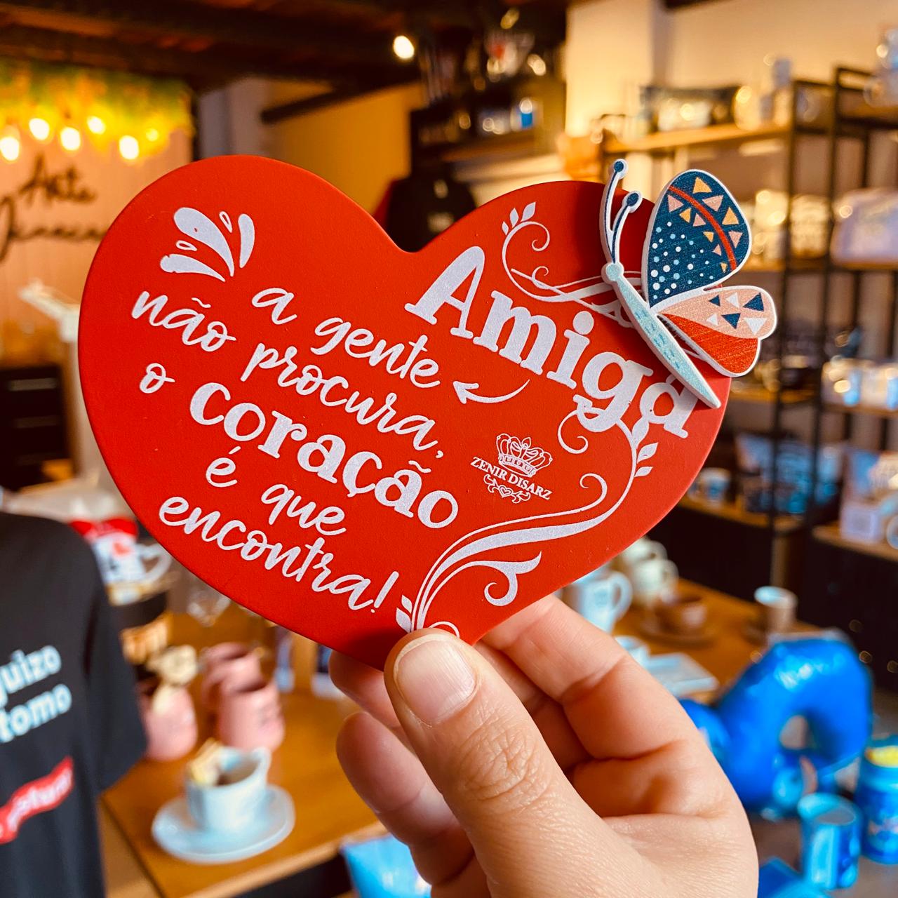 Enfeite de mesa Amiga a gente não procura , o coração é que encontra 10,5X11(P18876)