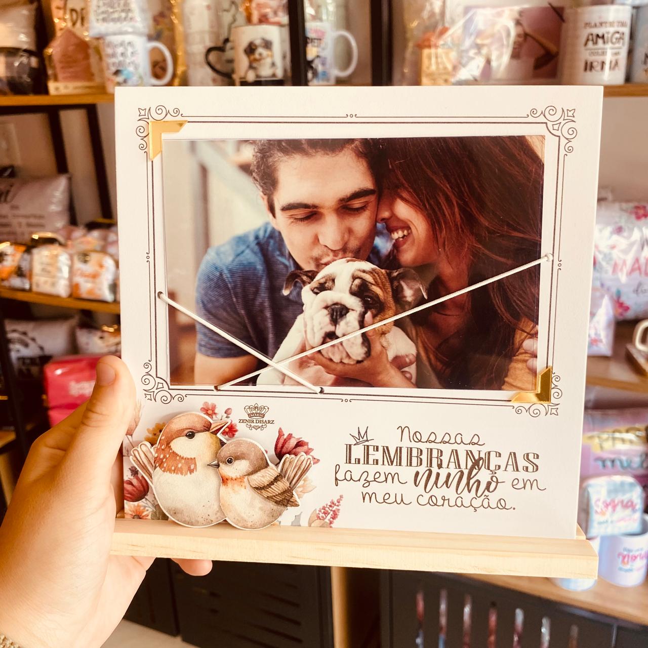 Porta-Retrato com Elástico “Nossas Lembranças… Passarinho”