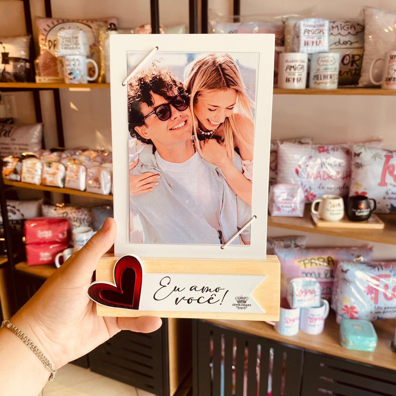 Porta-Retrato Madeirinha com Aplique “Eu Amo Você”