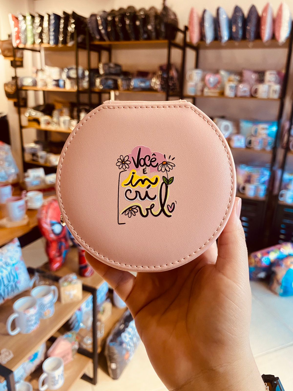 Charme, organização e inspiração em um só acessório! O Porta-Joias Redondo com Frases é ideal para quem ama levar suas joias e bijuterias com estilo e um toque de significado. Com frases delicadas e motivadoras estampadas na tampa, ele une funcionalidade e emoção em cada detalhe.