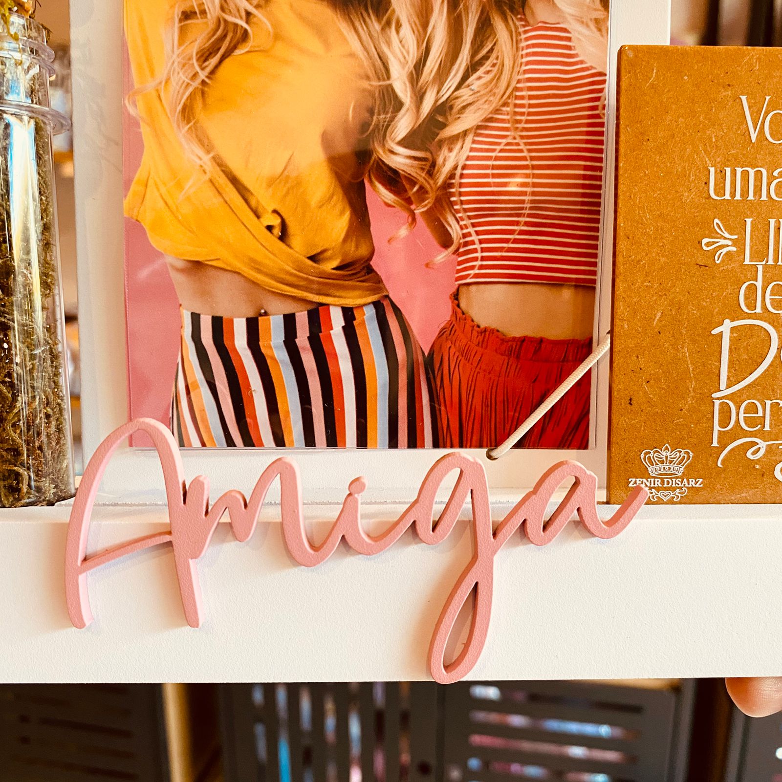 Placa decorativa com a mensagem “Amiga Você É…”, perfeita para expressar carinho e gratidão