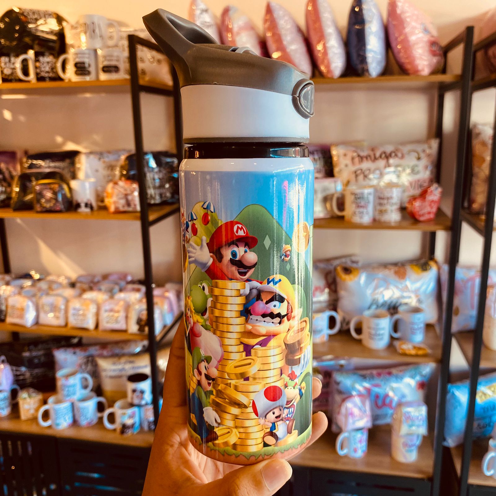 Com essa squeeze, até hidratar-se vira uma aventura no Reino dos Cogumelos!