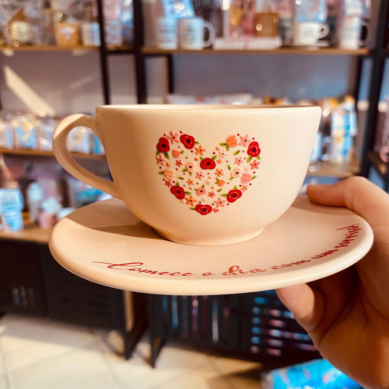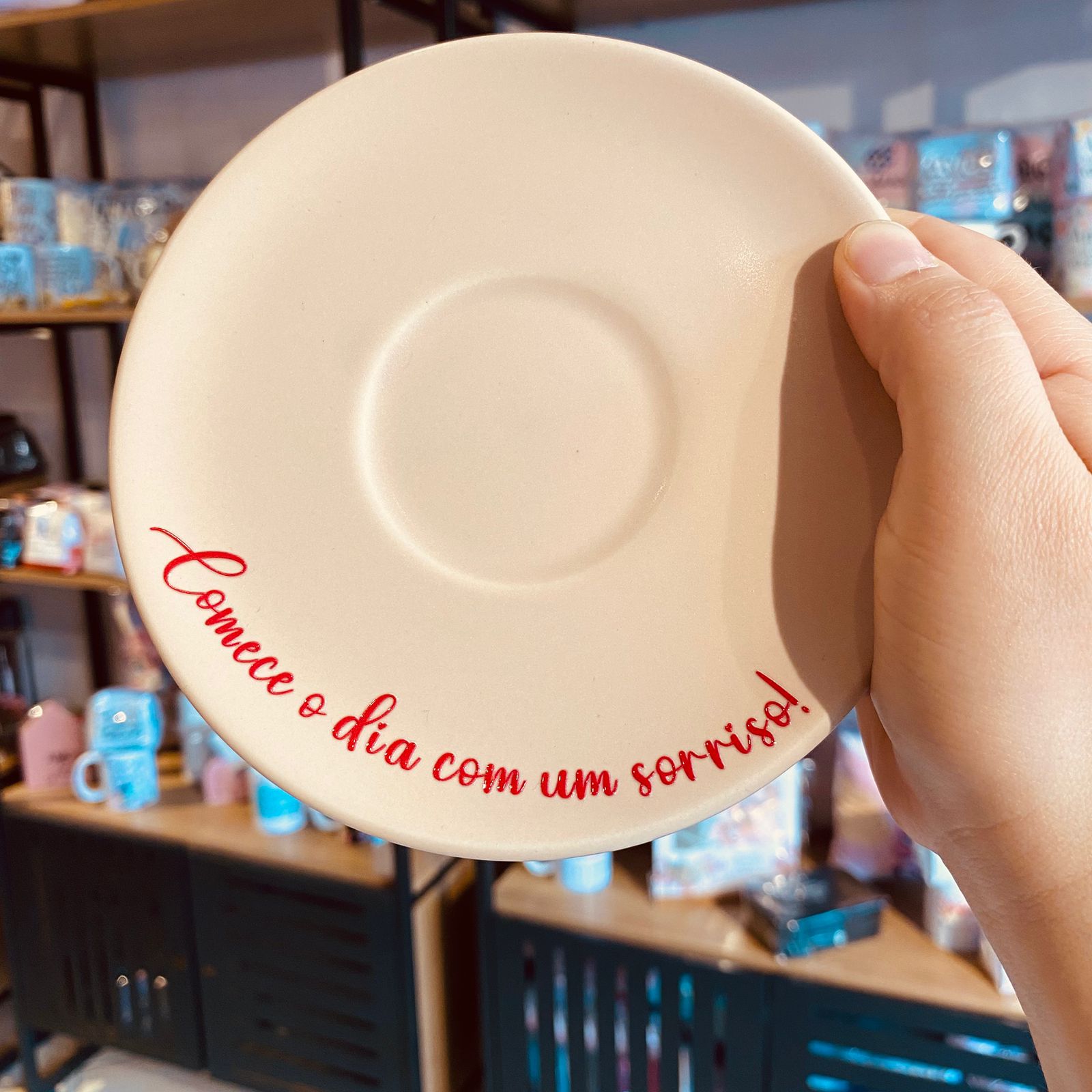 Xícara Cerâmica com Pires comece o dia com um sorriso!